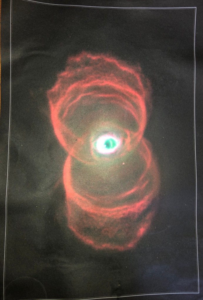 I chose the picture above of a poster I have that shows a photo taken by the Hubble Space Telescope of the Hourglass nebula. I’ve had this poster since high school and its always been my favorite due to its interesting eyeball figure and many colored rings. The picture actually shows MyCn18 , a young planetary nebula that is located about 8000 light years away. This photograph was another instance of the Hubble Space Telescope greatly increasing the understanding of space phenomena
